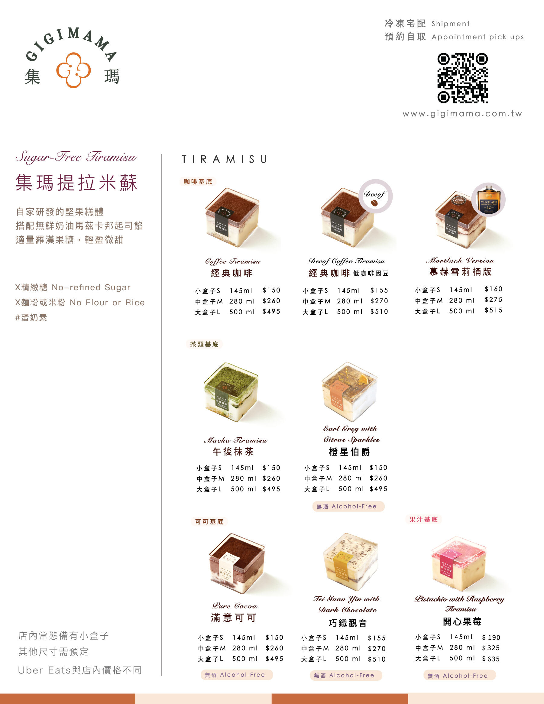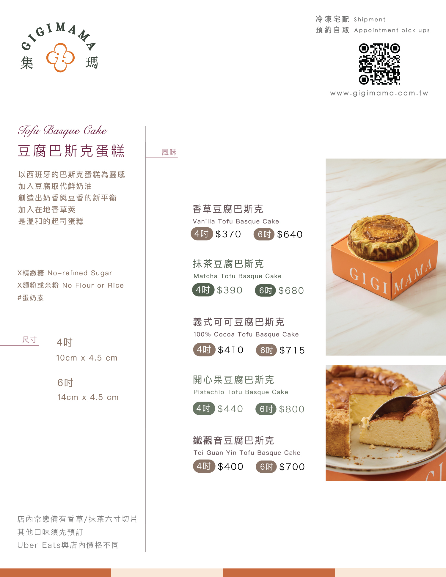 整模蛋糕歡迎預訂冷藏版或冷凍版,1500元以內的預定,若不想透過官網,也可現場/LINE私訊我們預定