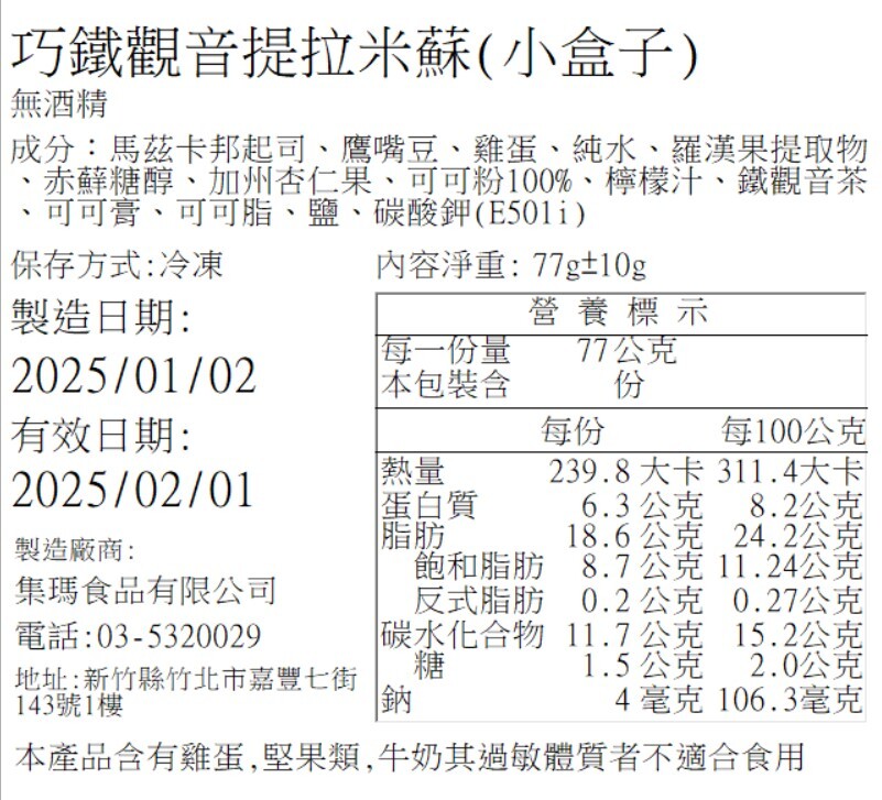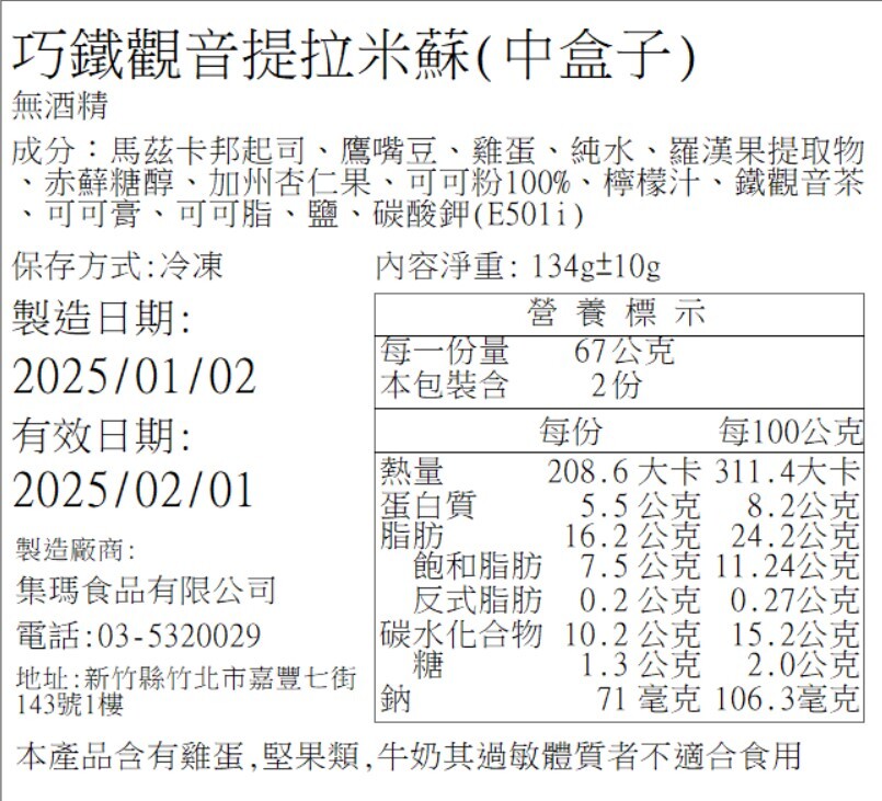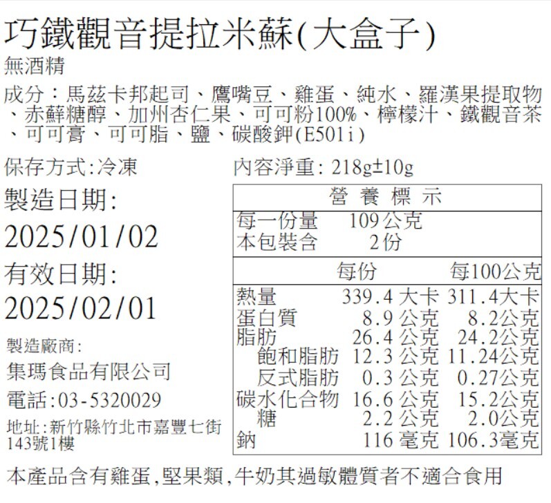 食品標籤 (日期以訂單為主,圖示為營養標示示意)